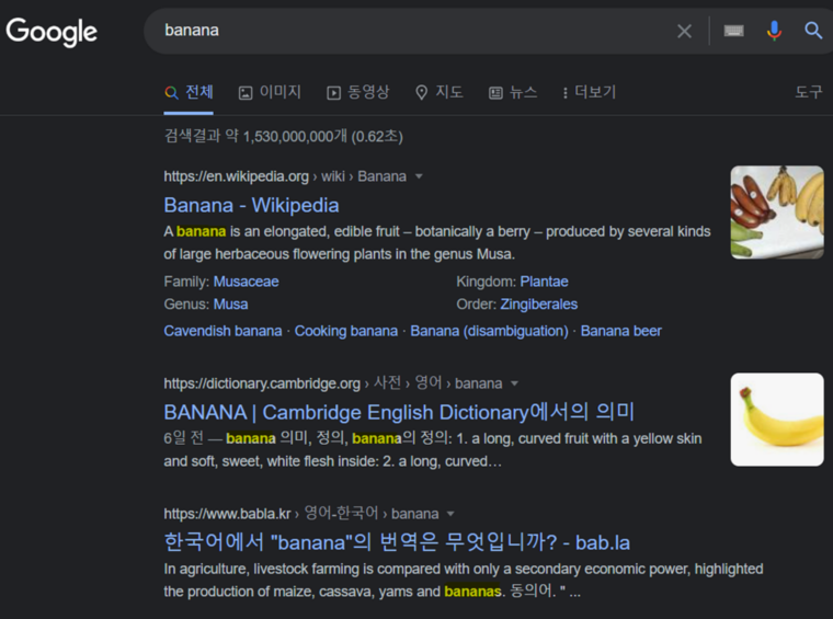 우리가 네이버나 구글에 검색어를 치면 검색어가 포함된 게시글을 바로바로 보여준다. 세세한 것은 다르겠다만, “banana”라는 글자를 치면 바로 “banana” 키워드가 있는 게시물을 보여준다.