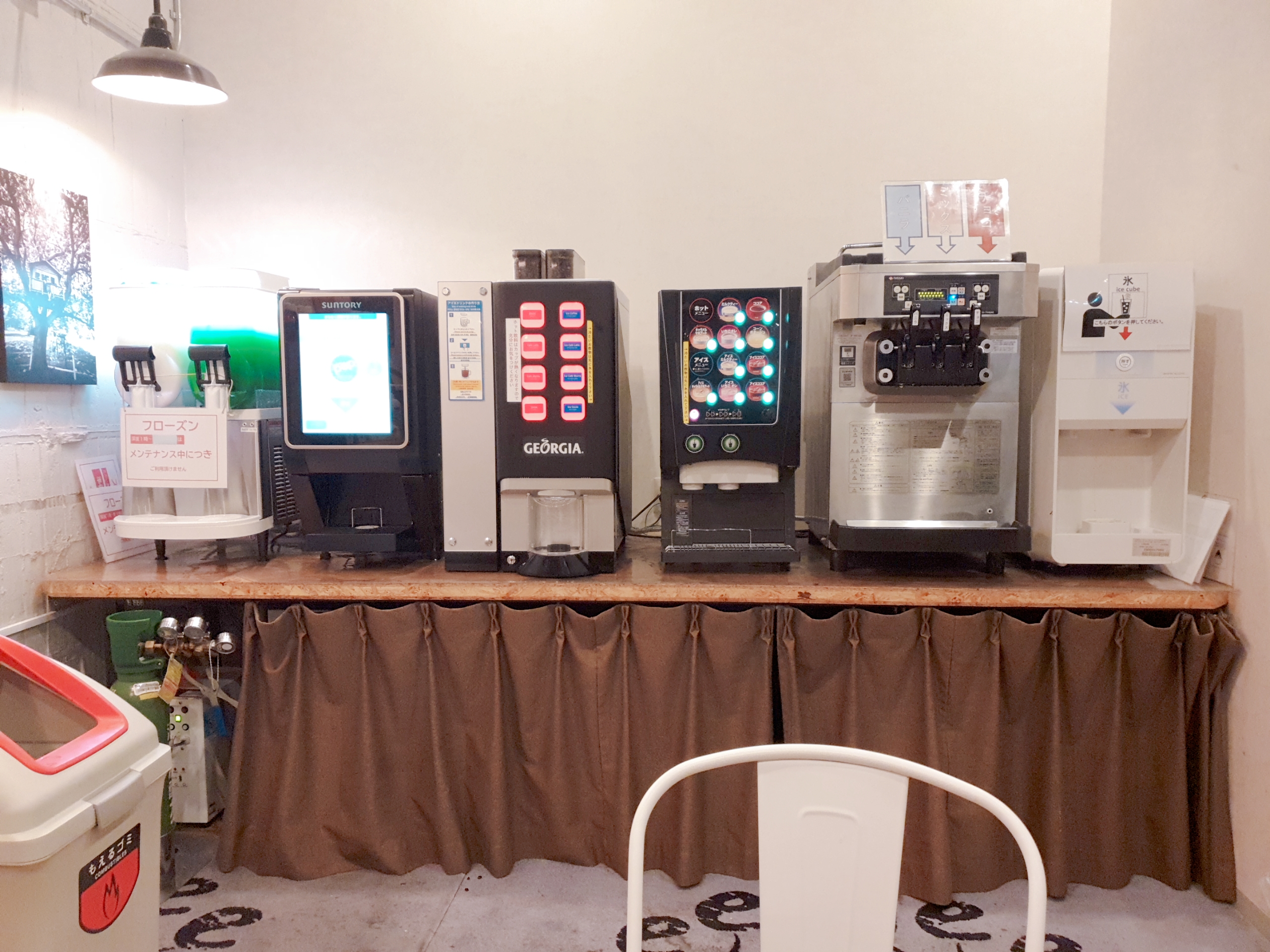 쉐이크 + 갖가지 탄산음로 + 커피 + 아이스크림 + 기타 뜨거운 음료들(코코아 등)이 모두 공짜!