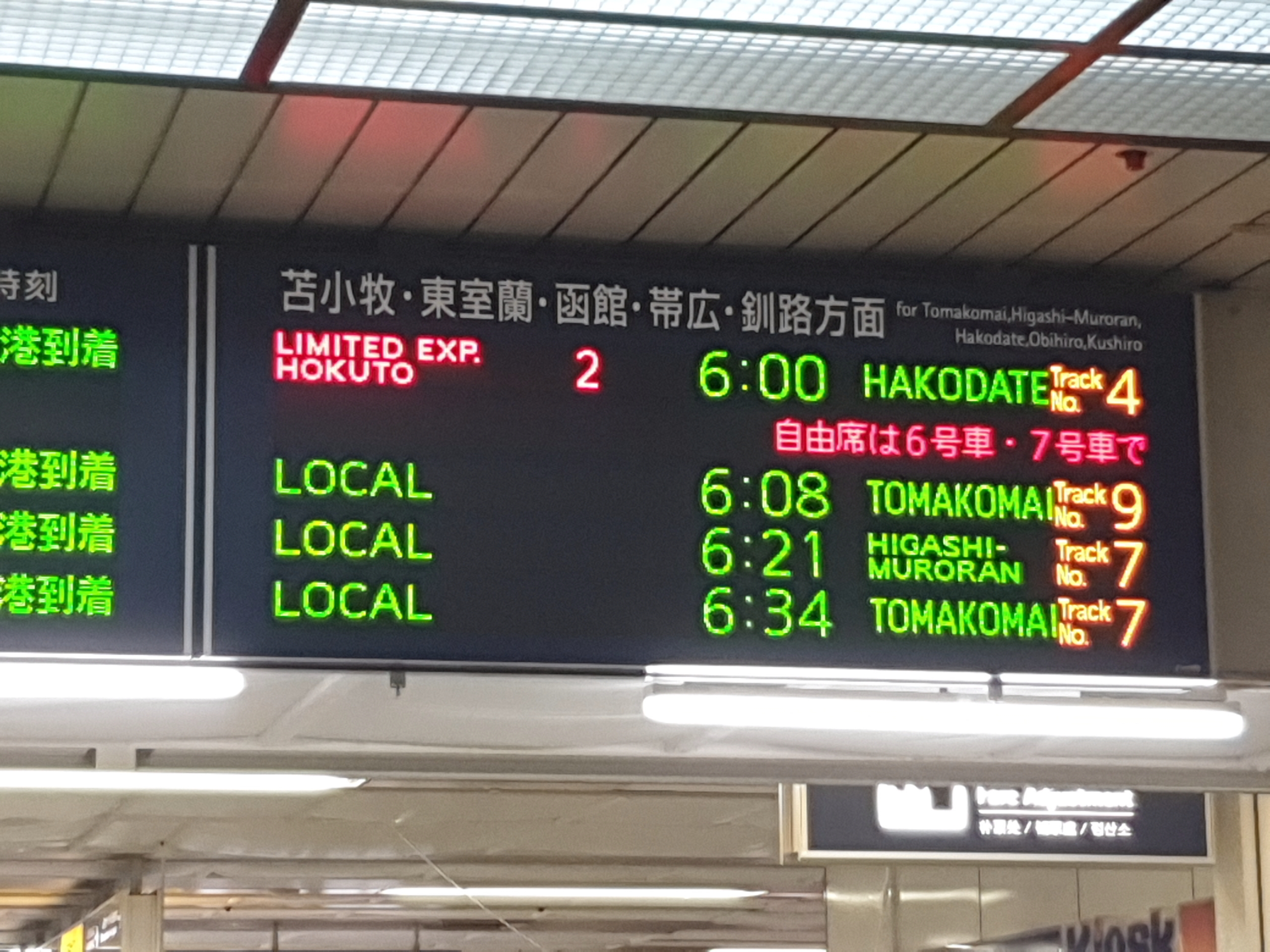 저기 보이는 6:00 HAKODATE 저 열차를 타고 간다